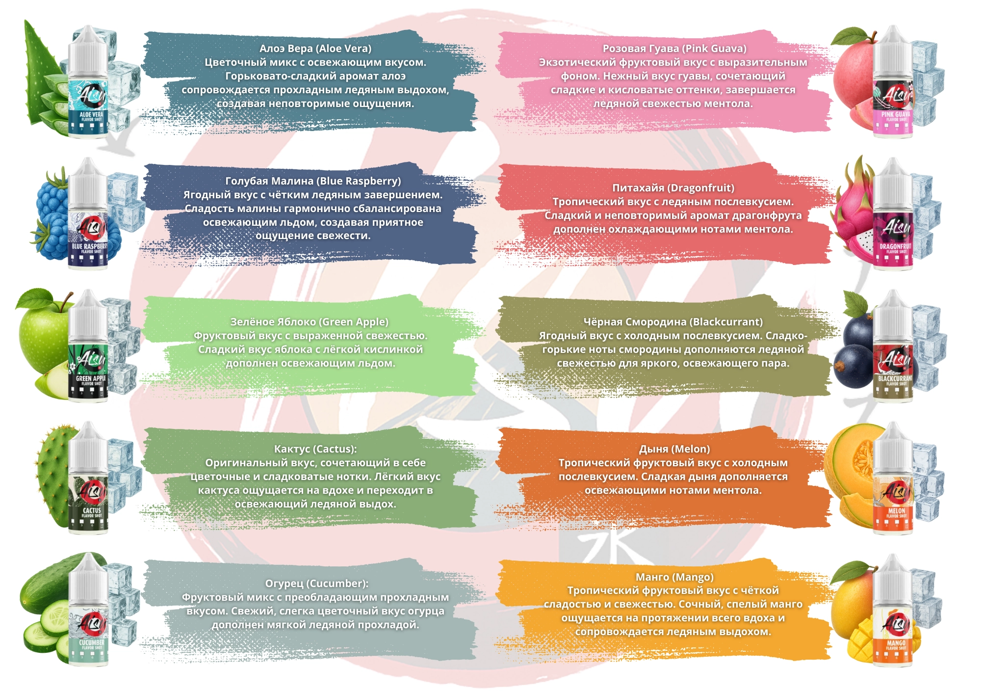 Алоэ Вера от AISU – цветочный микс с освежающим вкусом. Горьковато-сладкий аромат алоэ сопровождается прохладным ледяным выдохом, создавая неповторимые ощущения.