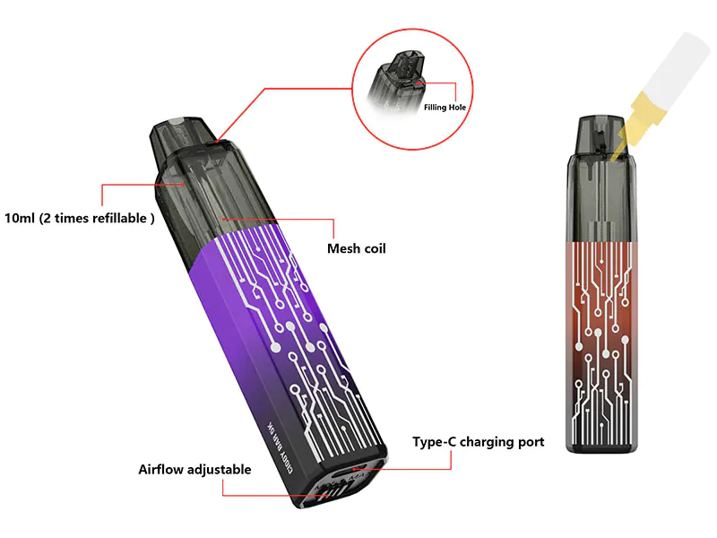 After filling the e-juice please remove the bottom sticker and await for 2-3 minutes before first use, allow the coils to get wet, otherwise the coil will burn, and it would be impossible to fix.