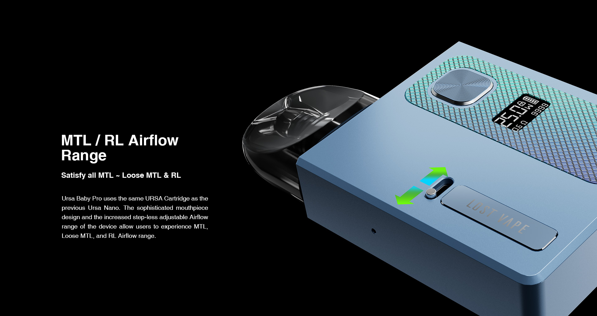 Lost Vape Ursa Baby Pro הוא קיט פודים קומפקטי וידידותי למתחילים, רב-שימושי ודורש תחזוקה מינימלית – בחירה מצוינת למעשנים חדשים או לכל מי שרוצה לעבור משימוש בסיגריות חד-פעמיות. ערכת הפודים הניתנת למילוי הזו, בעיצוב אלגנטי ונוח לנשיאה, מספקת שאיפה בסגנון MTL המדמה תחושת עישון. היא כוללת עוצמה מתכווננת עד 25W עם סוללה נטענת 900mAh, זרימת אוויר מתכווננת ותצוגה המציגה מצב סוללה, מונה שאיפות ועוצמת עבודה.