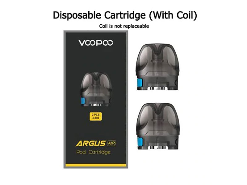 Glad to introduce the VOOPOO ARGUS AIR Pod Cartridge with 2 pieces each pack. The VOOPOO ARGUS AIR Pod Cartridge is specially designed for VOOPOO ARGUS AIR Pod Kit. In The VOOPOO ARGUS AIR you can rotate the standard cartridge 180° and insert it, than you will get unparalleled comfort to MTL and Restricted DL. Moreover, the VOOPOO ARGUS AIR Pod Cartridge comes with non-replacelable 0.8ohm coil inside, featuring 3.8ml side filling the strong magnetic cartridge.
